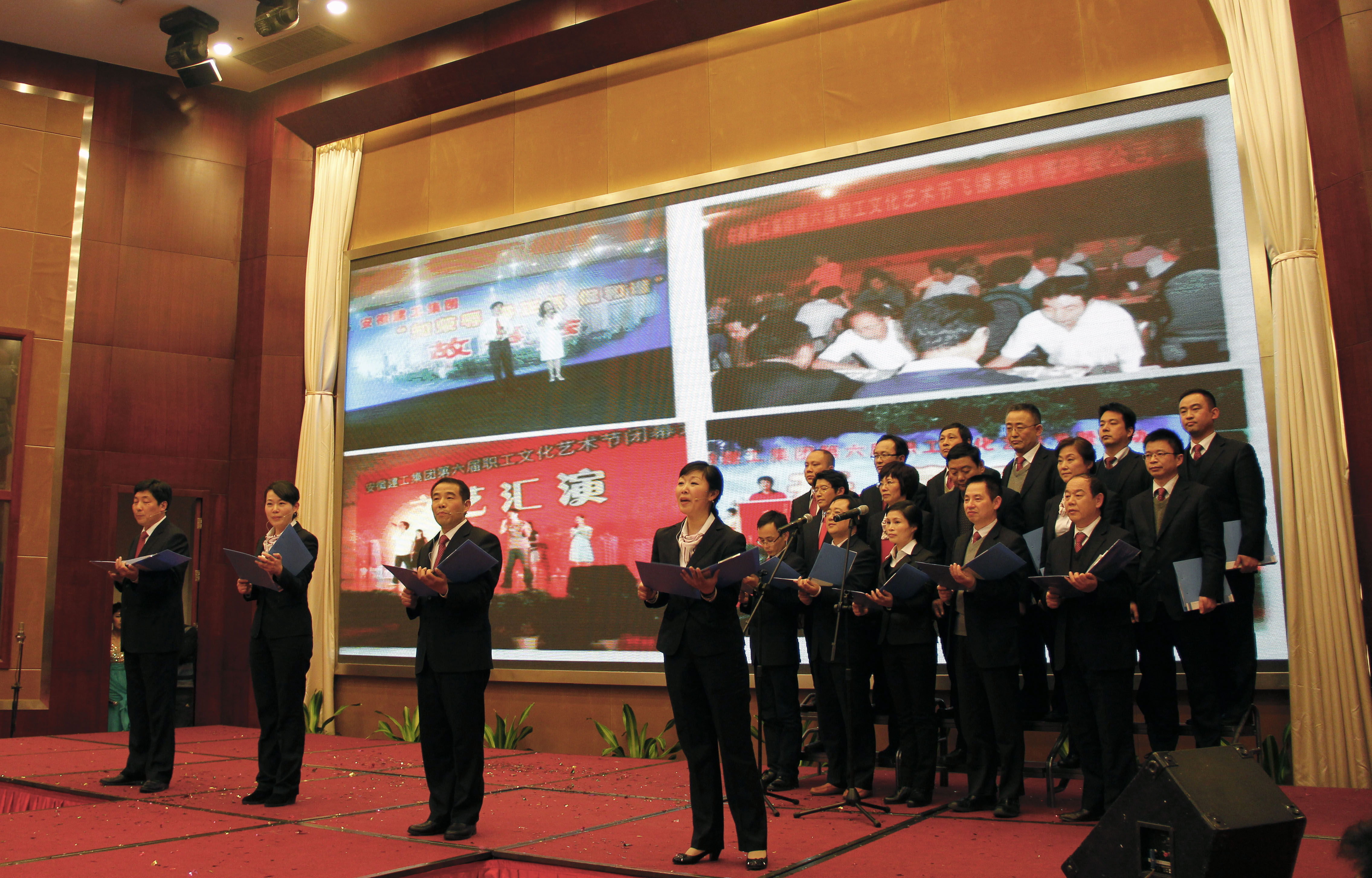 1月20日,由集團公司機關黨委、機關工會、九華公司主辦的2014年迎新春茶話(聯(lián)誼)晚會在安徽水利東方國際會議中心成功舉辦。晚會緊緊圍繞 “同心共筑建工夢,快馬加鞭開門紅”這個主題,以歡快喜慶的舞蹈《開門紅》拉開序幕,整臺晚會充滿歡樂祥和的新年氣氛,職工們自編自演多個文藝節(jié)目,展現(xiàn)了安徽建工人特別能吃苦、特別能戰(zhàn)斗的精神風貌和積極向上的員工風采,整臺晚會表達了員工的豪情與夢想,激發(fā)了員工對2014年將“深化改革,轉型升級,科學發(fā)展”的向往。