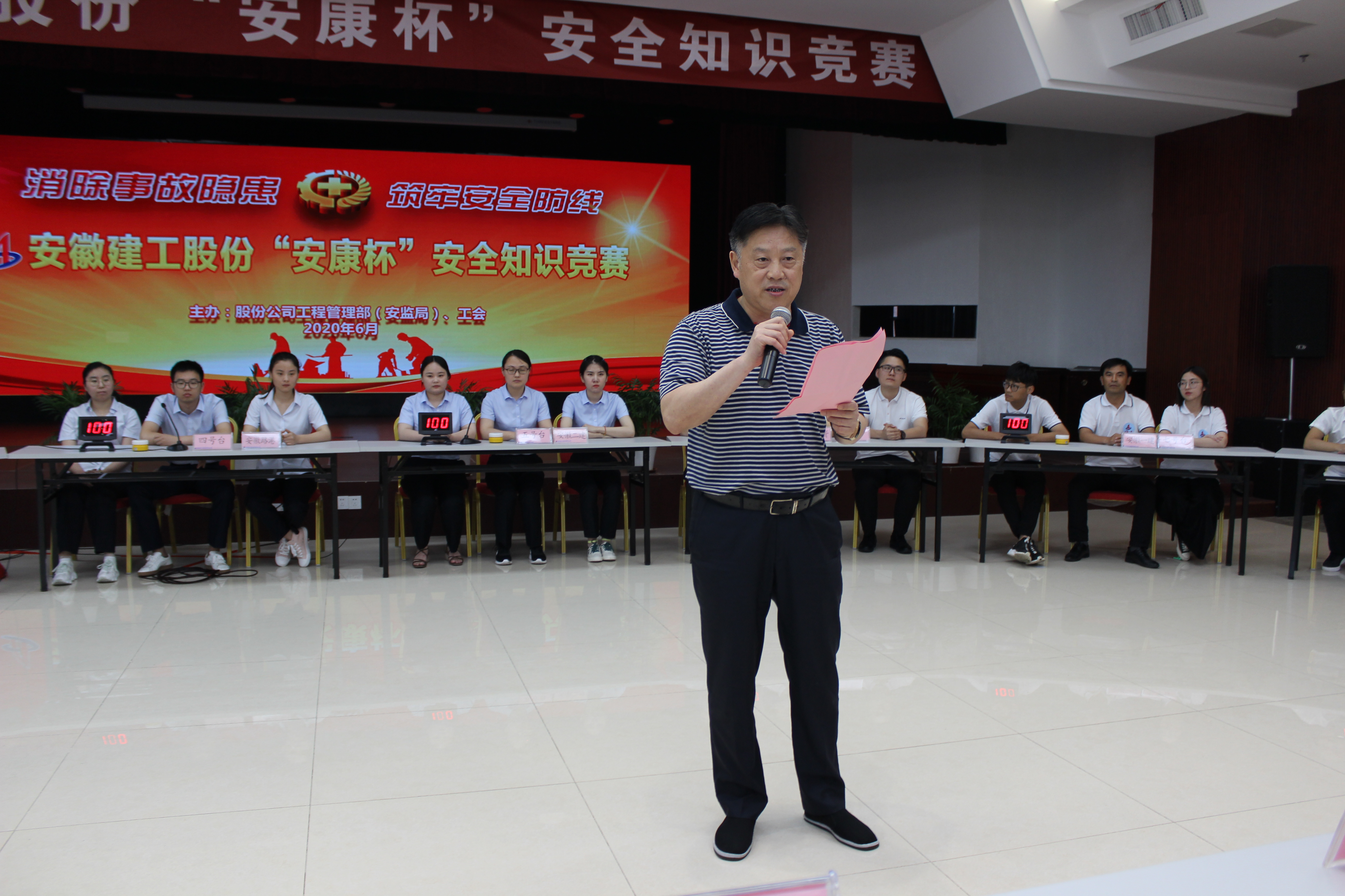 6月12日,安徽建工股份2020年“安康杯”安全知識競賽在安建國際大廈三樓報告廳舉行??毓牲h委委員、股份黨委副書記、安委會主任、總經(jīng)理許克順出席活動并致開幕詞,省建設(shè)建材工會主任程德旺蒞臨活動現(xiàn)場。股份公司安監(jiān)局、工會全員,所屬各單位分管安全領(lǐng)導(dǎo)、工會、安全部門負責(zé)人等參加了本次活動。